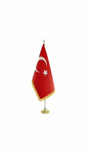 پرچم ترکیه تشریفاتی ایستاده با پایه طلایی خورشیدی