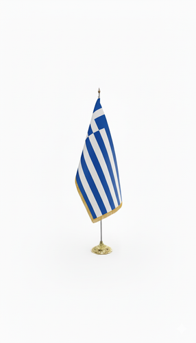 پرچم یونان تشریفاتی ایستاده با پایه طلایی خورشیدی