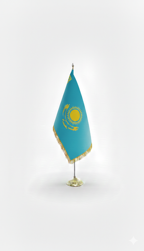 پرچم قزاقستان تشریفاتی ایستاده با پایه طلایی خورشیدی