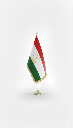 پرچم تاجیکستان تشریفاتی ایستاده با پایه طلایی خورشیدی