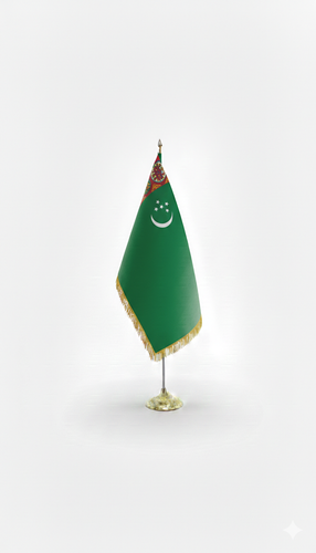 پرچم ترکمنستان تشریفاتی ایستاده با پایه طلایی خورشیدی