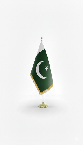 پرچم پاکستان تشریفاتی ایستاده با پایه طلایی خورشیدی