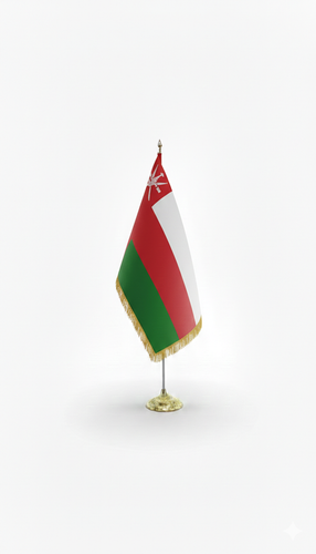 پرچم عمان تشریفاتی ایستاده با پایه طلایی خورشیدی