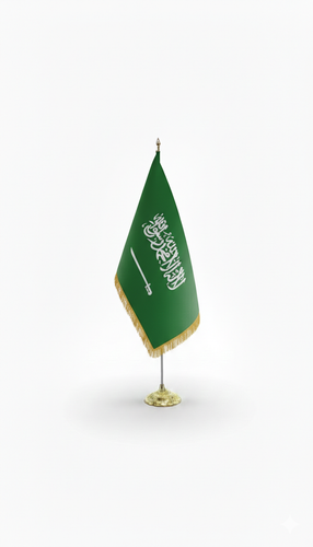 پرچم عربستان سعودی تشریفاتی ایستاده با پایه طلایی خورشیدی