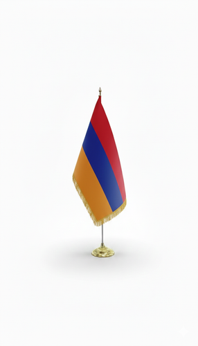 پرچم ارمنستان تشریفاتی ایستاده با پایه طلایی خورشیدی