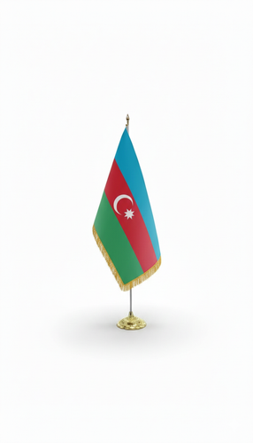 پرچم آذربایجان تشریفاتی ایستاده با پایه طلایی خورشیدی