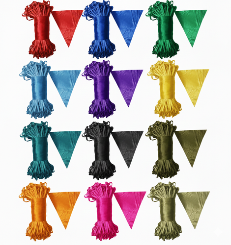 ریسه مثلثی رنگی پارچه ساتن براق درجه ۱ خارجی بسته ۱۰۰ متری