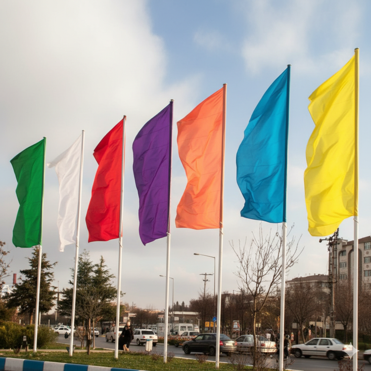 پرچم عمودی رنگی پارچه ساتن براق سایز۱*۶
