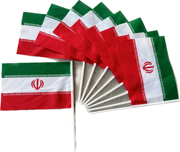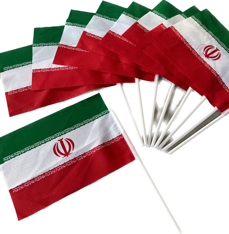 پرچم ایران پرچم دستی ایران سایز30*40سانتی بادسته پلاستیکی بسته 50 عددی